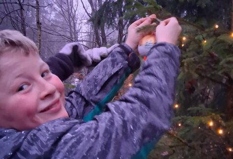 Die Familienwanderung mit Uli Herrmann und dem Fichtelgebirgsverein Bischofsgrün war wieder ein vorweihnachtliches Highlight für Bischofsgrün. Sehr viele Teilnehmerinnen und Teilnehmer genossen die angenehme und kurze Wanderung an den Hügelfelsen und schmückten traditionell wieder einen Baum direkt am Märchenwanderweg. Vor Ort wurden dann noch Lieder gesungen und es gab eine