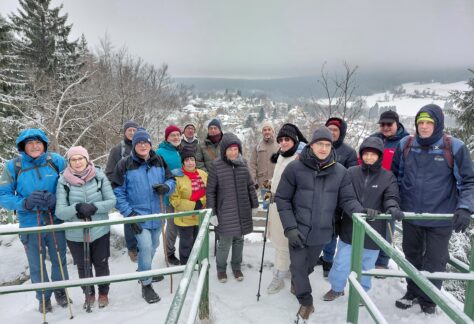Trotz -oder gerade wegen- frostiger Temperaturen und eisigem Wind haben sich immerhin 23 Wanderfreunde auf die 6,5 km lange Neujahrswanderung mit dem 1. Vorsitzenden Rainer Schreier auf Tour begeben. Kurz vor 15:30 Uhr war die Gruppe dann wieder am Markplatz, rechtzeitig zum Neujahrsanschießen und den Neujahrsgrüßen von Ersten Bürgermeister Michael